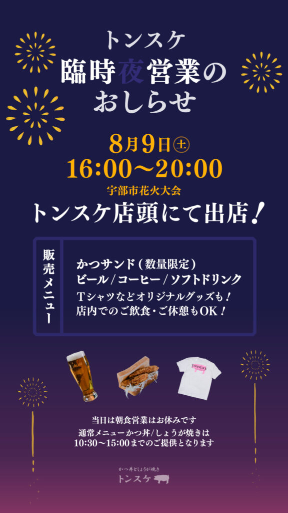 〈トンスケ〉 宇部市花火大会トンスケ店頭にて出店!!